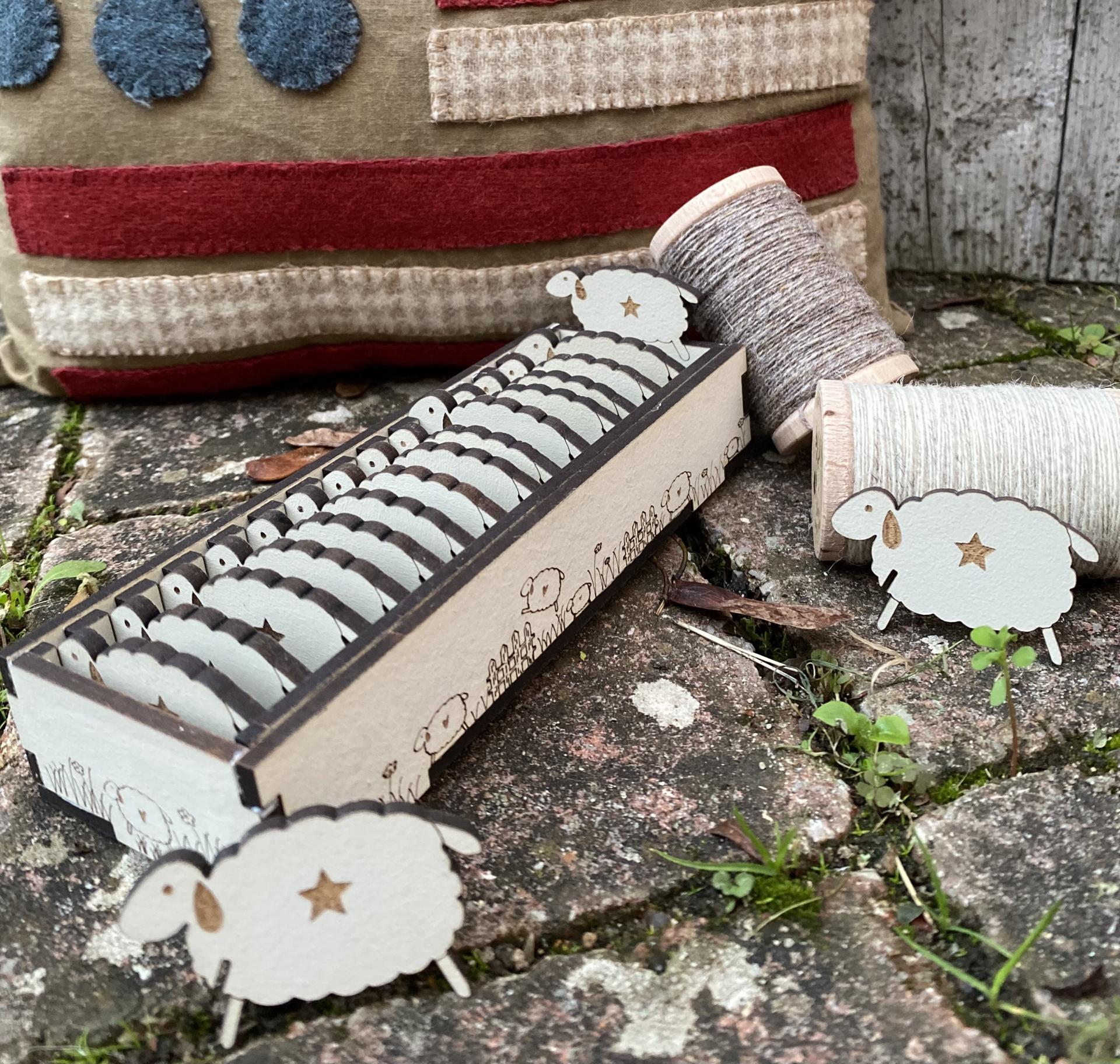 Boite de rangement tri-fils moutons en bois peint